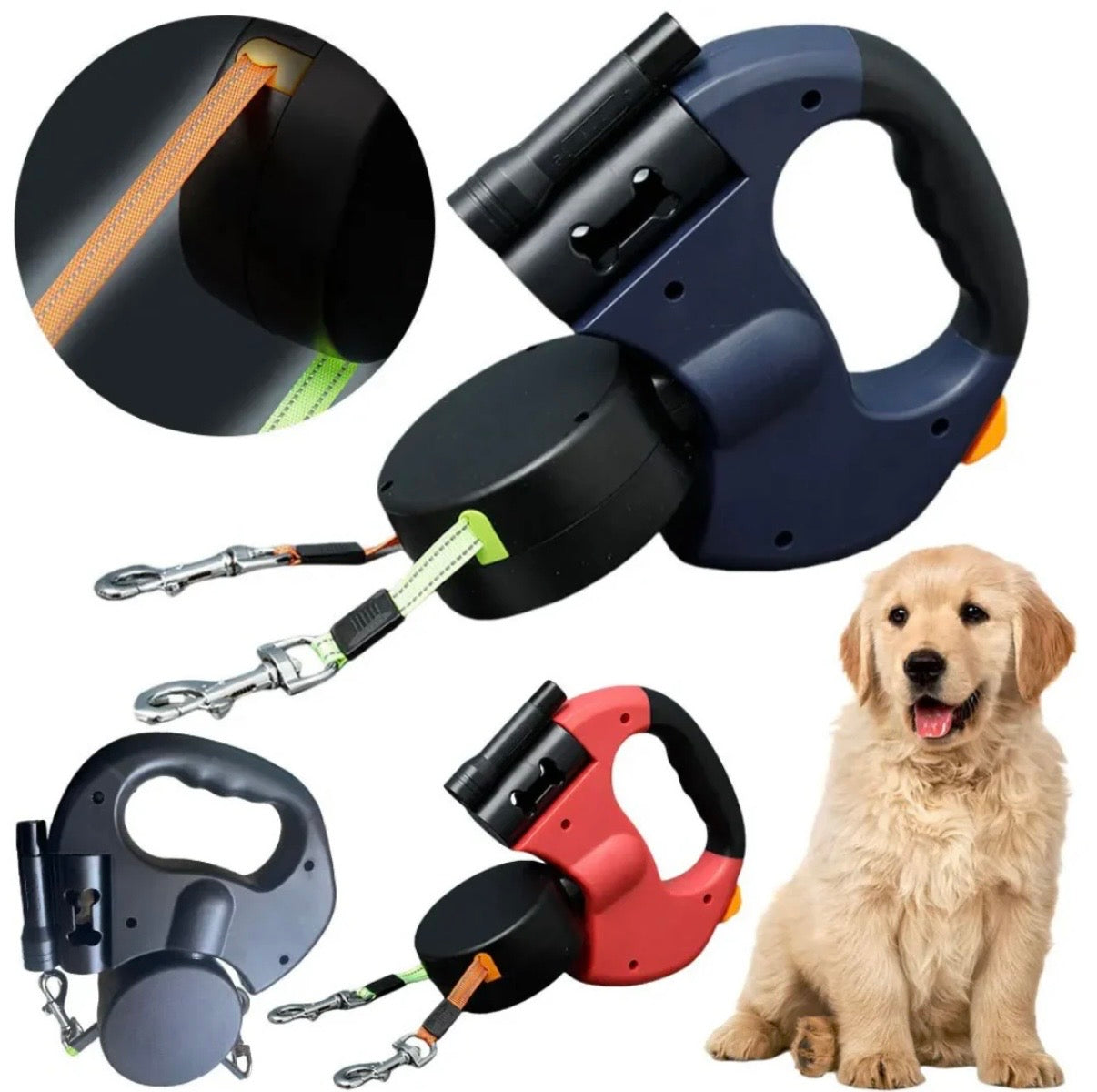 Robust, lightweight, and practical: The 360° swivel joint reliably prevents the leash from tangling. The integrated LED flashlight ensures safety in the dark. Suitable for small to large dogs, with a comfortable, non-slip grip.